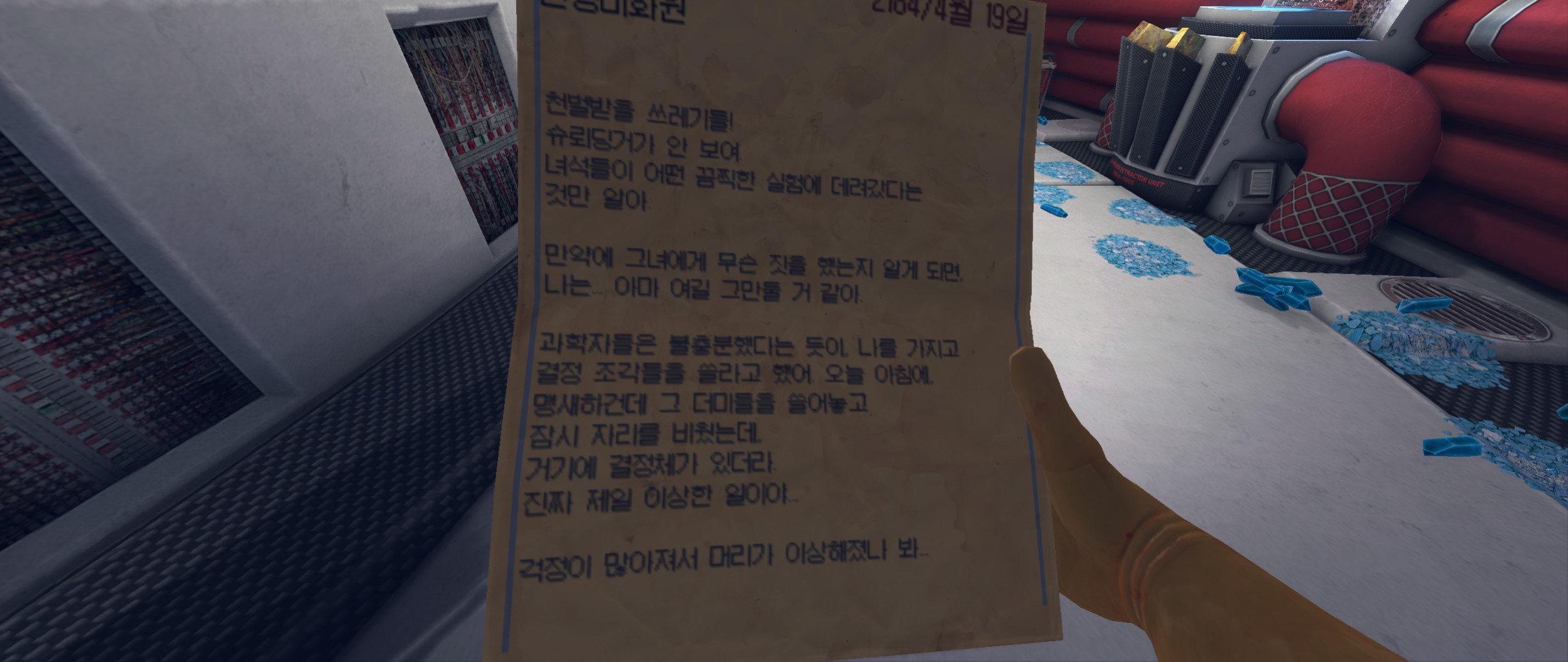 이렇게 크리스탈화 된 시체를 치우고 저 바닥을 닦으면....