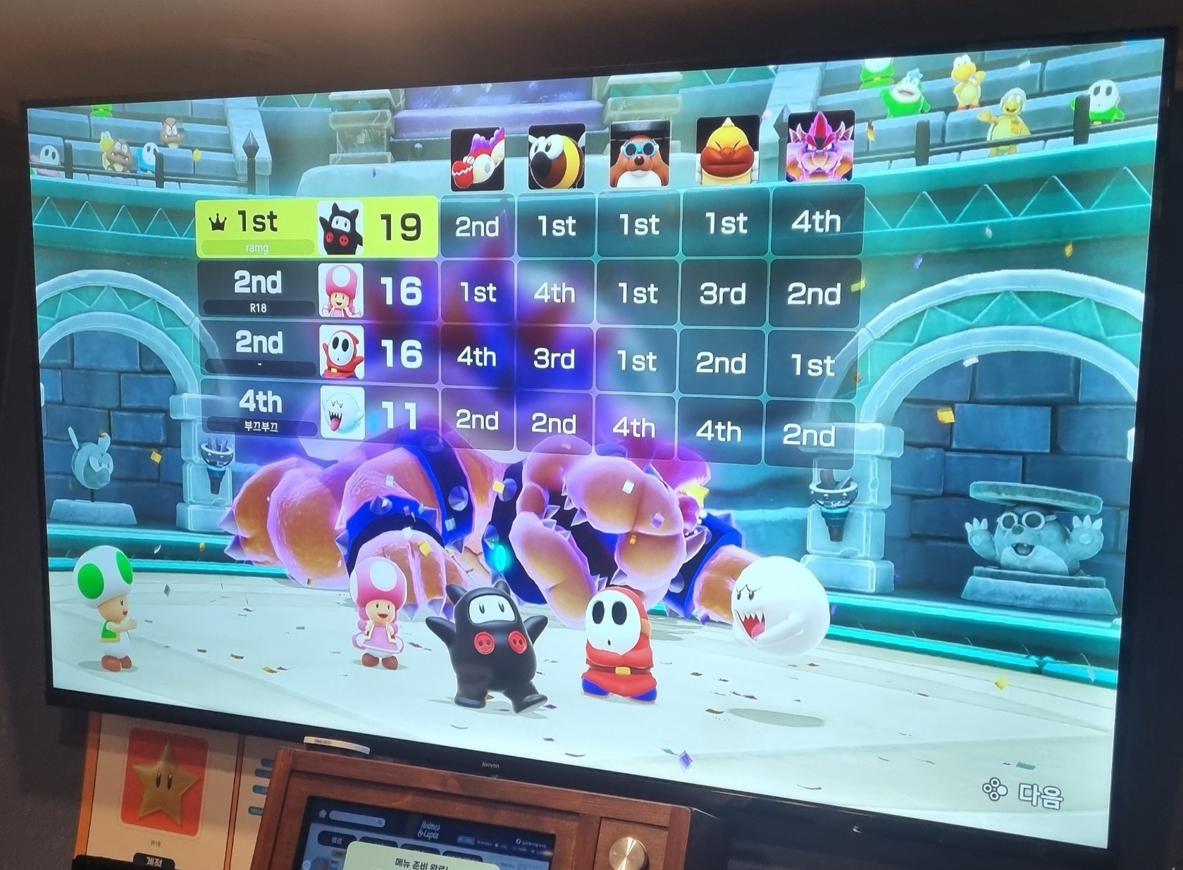 미니게임에서 줄창 밀려놓고 중간에 동키콩 합류 뜬 덕분에 승리하다